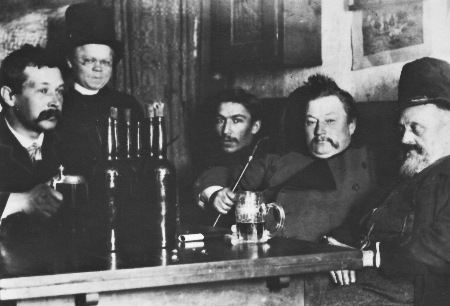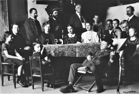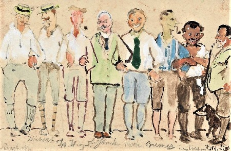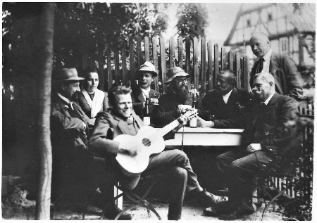 Malerkolonie Röllshausen Kleine Karikatur von Adolf Lins (ganz rechts)