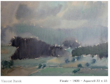 "1941 hat er zwei Kriegskameraden porträtiert, kleine Zeichnungen und doch von großem Gewicht: der eine ist Geigenspieler, dem anderen widmet er handschriftlich die Zeile "Wenn kein Krieg ist, bläst er die Flöte". In dunkler, schwerer Zeit Abbildung und Hinweis auf die Welt der Harmonien, die letzten Endes unzerstörbar ist. Da ist kein Platz für Feindbilder, unbekannte und doch liebevoll wahrgenommene russische Frauengestalten, das menschliche Antlitz überlebt durch die Tuschezeichnung von Burek das Inferno des Krieges. Eine Mutter flieht vor der Furie des Krieges, spärliche Holzreste unter dem Arm für ein wärmendes Feuer." (Pfarrer Christoph Bachmann, Laudatio Gedächtnisausstellung 1988)